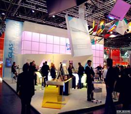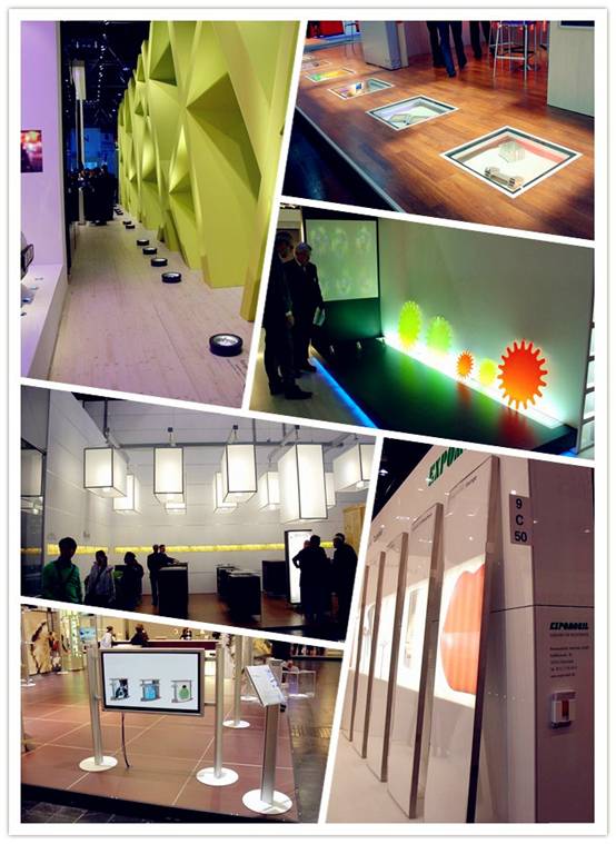 仔細觀察我們可以發(fā)現(xiàn),在廣州展覽會中直線的存在形式較多,包括單獨存在的各類直線、三角形、方形、多邊形等,它們分布在展廳空間中的每一個位置,如墻面、地面、展架、展臺、廣告宣傳牌、天花板、展品、展板等。展覽設(shè)計師必須將這些形態(tài)各異的直線與商業(yè)展覽空間進行有機地結(jié)合,使它們成為統(tǒng)一、和諧的整體,以達到有效的烘托展覽形象,增強展覽空間的藝術(shù)表現(xiàn)力,提高展覽空間的使用功能等目的。此外,設(shè)計師還應(yīng)該把直線的運用與展覽空間的使用功能密切結(jié)合,并且能夠適應(yīng)制作工藝的需求,發(fā)揮展覽設(shè)計中所用物質(zhì)材料的性能,盡可能的節(jié)省成本,最終展現(xiàn)出良好的視覺效果,從而實現(xiàn)客戶的商業(yè)目的。