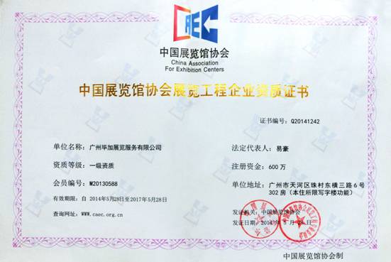 為了適應(yīng)中國(guó)展覽業(yè)快速發(fā)展的形勢(shì),應(yīng)對(duì)國(guó)際展覽業(yè)的競(jìng)爭(zhēng)與合作,進(jìn)一步規(guī)范市場(chǎng),提高展覽工程的技術(shù)和施工水平,確保展覽工程的質(zhì)量和安全,推動(dòng)行業(yè)進(jìn)步與繁榮,中國(guó)展覽館協(xié)會(huì)特制定展覽工程企業(yè)暨展覽場(chǎng)館工程部門(mén)資質(zhì)等級(jí)。經(jīng)過(guò)層層的審批畢加展覽榮獲“中國(guó)展覽館協(xié)會(huì)一級(jí)資質(zhì)”的最高等級(jí)榮譽(yù)。