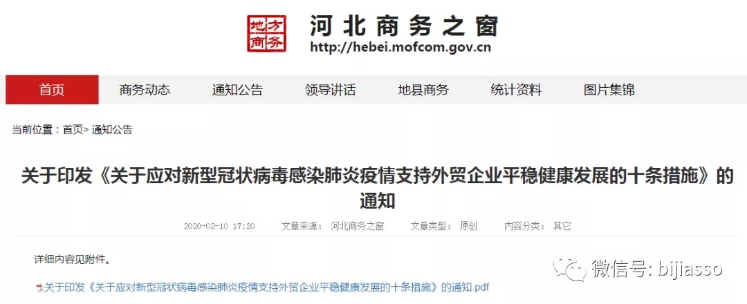 《河北省關(guān)于應(yīng)對(duì)新型冠狀病毒感染肺炎疫情支持外貿(mào)企業(yè)平穩(wěn)健康發(fā)展的十條措施》