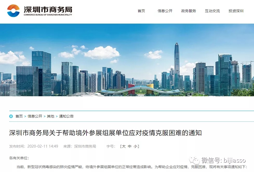 深圳市商務(wù)局關(guān)于幫助境外參展組展單位應(yīng)對(duì)疫情克服困難的通知