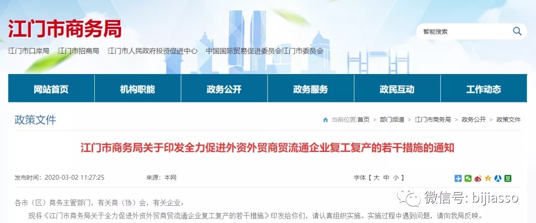 江門(mén)市商務(wù)局關(guān)于全力促進(jìn)外資外貿(mào)商貿(mào)流通企業(yè)復(fù)工復(fù)產(chǎn)的若干措施