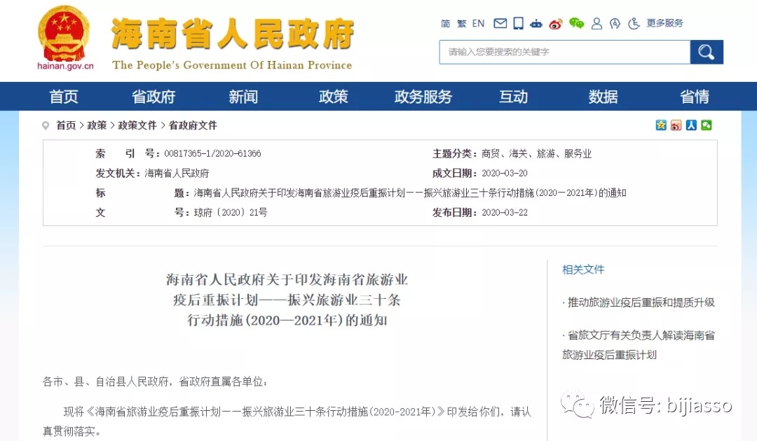 海南省人民政府關(guān)于印發(fā)海南省旅游業(yè)疫后重振計(jì)劃——振興旅游業(yè)三十條行動(dòng)措施(2020—2021年)的通知