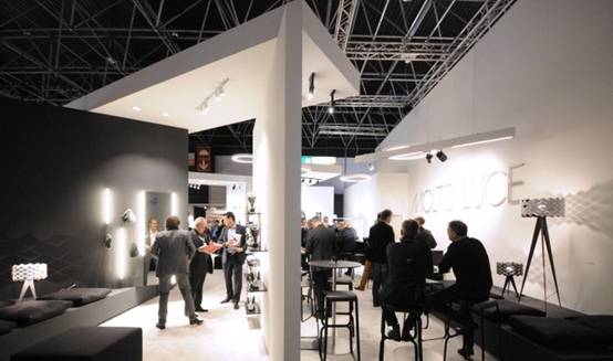 在增加空間感上,鏡子是個經(jīng)典的道具。它主要放置在兩個地方,第一是展示墻,展品后面放置鏡子,參觀者看展品時就會有放大的感覺,尤其是有狹窄過道的小展位。第二是天花板位置,配合白熾燈,可使展位通體透明,令人感到輕巧明快,既節(jié)省了燈光的使用和電費,還增加了空間感。
